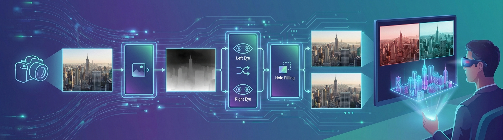 前言 最近在研究怎么把普通的2D视频转成3D立体视频,说白了就是从一个摄像头拍的画面里”脑补”出左右眼的视差,让你戴上3D眼镜就能看到立体效果。这个方向其实挺有意思的,不管是给老电影”翻新”成3D版本,还是给VR头显生产内容,都有实打实的应用场...